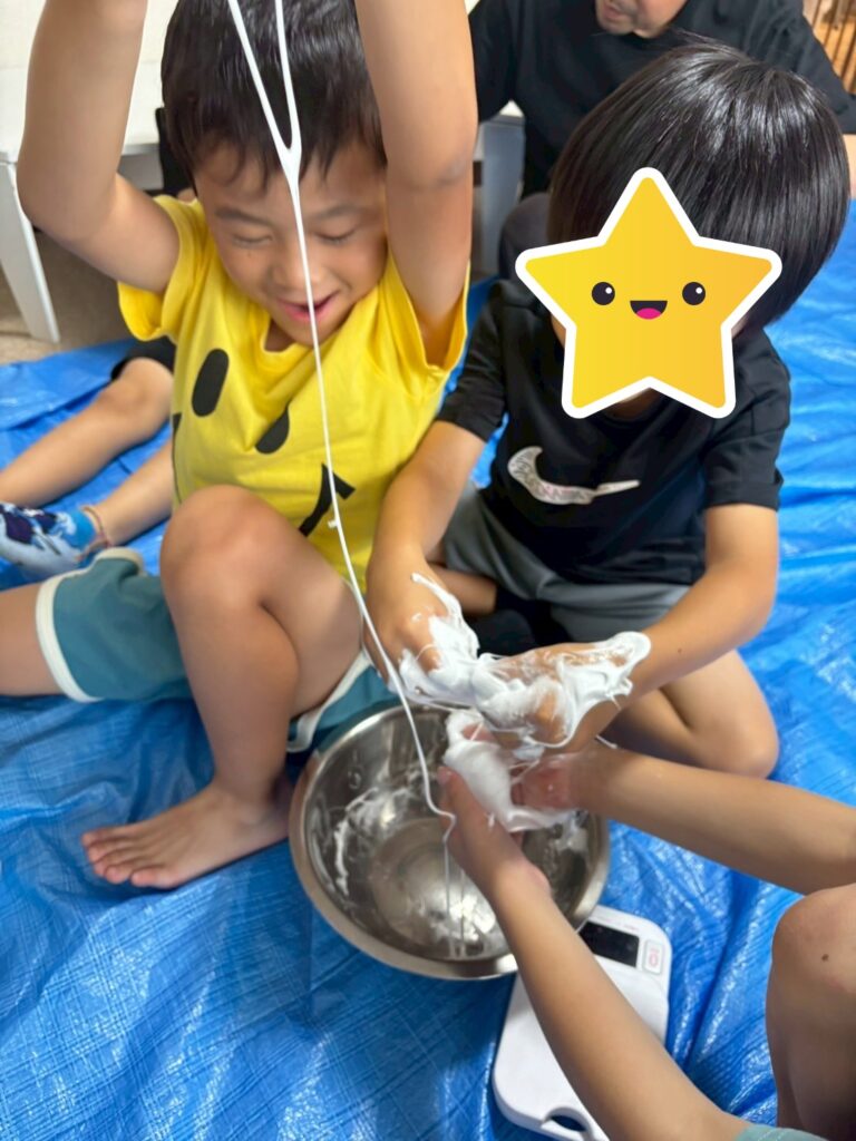 夏休み期間中の土曜日に、みんなで”しゅわしゅわスライム”を作って遊びました!